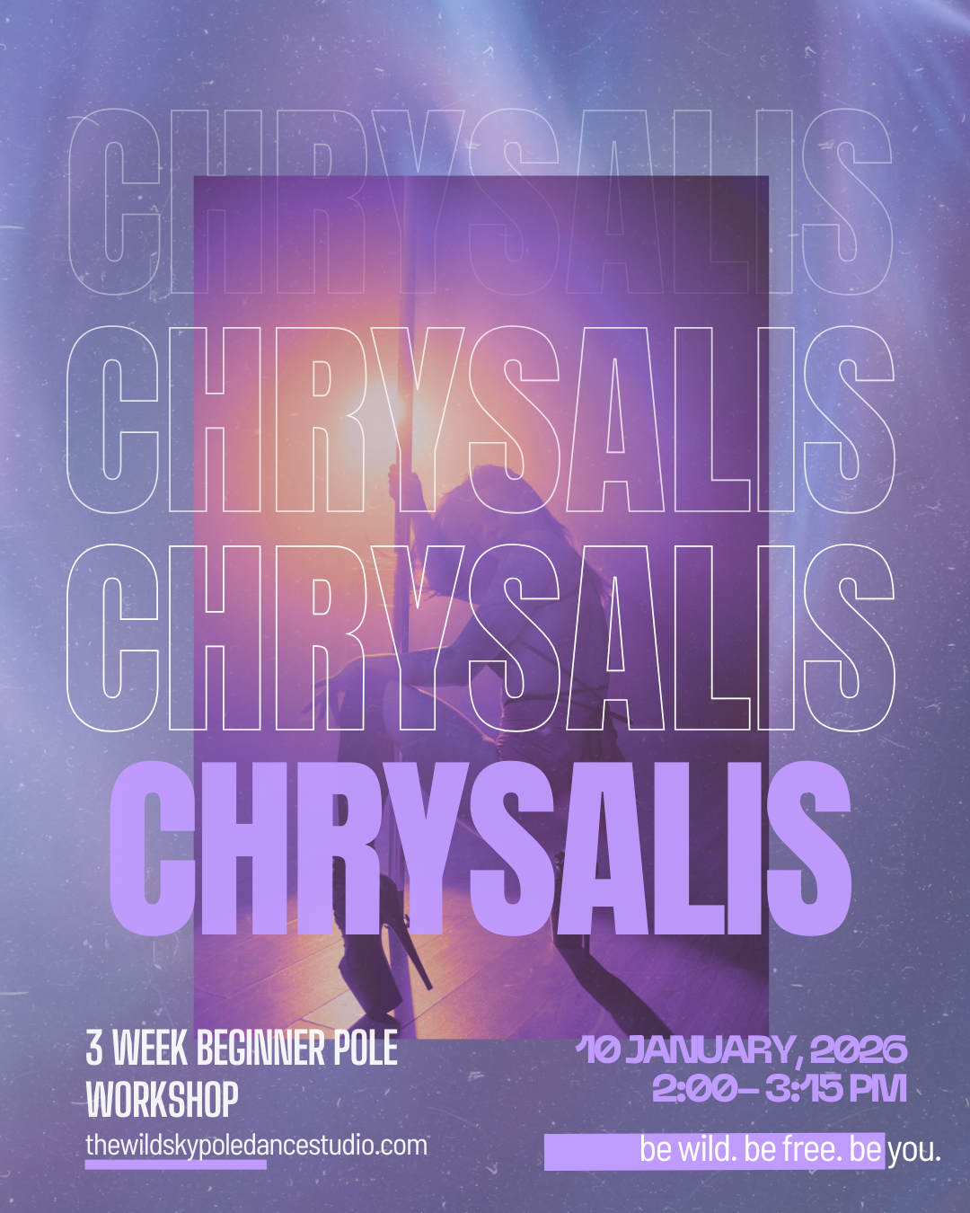 Enter the chrysalis and join Katie and Jessie for a 3 week introductory series designed for the absolute beginner to learn the art of pole dance. Each week will include a warmup that is designed to help students connect to their breath, body, and the space in a nourishing and supportive way. This is followed by exploration on the pole of foundational techniques, movements, and spins. Wrapping up each class with a short guided stretch and breathwork session.
